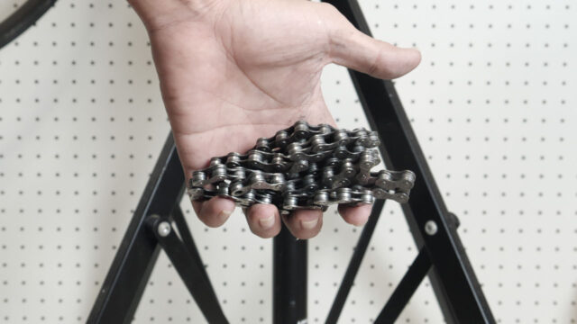 さて、具材を用意したら、なべを引っ張り出しましょう。マイ自転車パーツ専用なべです。おもにチェーンやプーリーやボルトを煮炊きします。