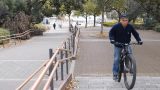ふつうの街乗りチャリダーのスタイルはこんなところでしょう。キャップ、リュック、上着、ジーパン、スニーカーです。